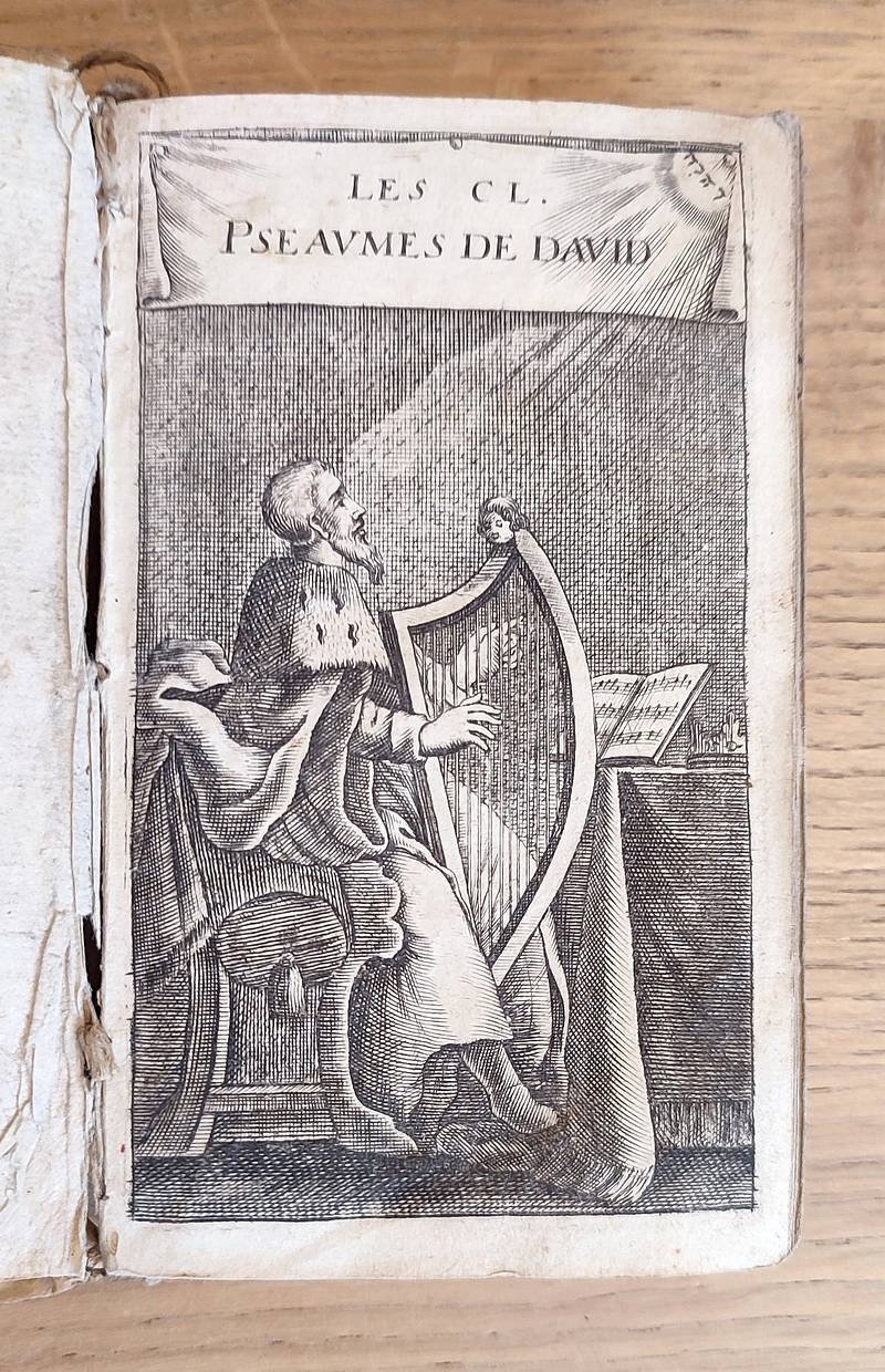 Impression de Plantin, ex typographia plantiniana, Balthasaris Moreti, 1697. Au format in 16, en plein maroquin d'époque, plats à la Duseuil ; dos à nerfs richement ornementé, coiffe haute abimée, tranches dorées, fermoir en laiton. Il s'agit d'une impression en noir et rouge avec 5 gravures à pleine page, 37 ff, 432 pages, CLXXXII, 51 pages, ex-libris moderne. Malgré le haut de coiffe accidenté, joli exemplaire avec une très belle typographie en deux couleurs.