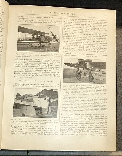 Description : Reliure complète pour l'année 1912, Dunot & Pinat, commençant au n° 1, Tome IV, janvier 1912 et finissant au Tome V, n° 12, décembre 1912, de 508 pages et 492 pages (parution à la quinzaine). Comprenant les articles : Construction du chemin de fer métropolitain (planche dépliante) - Aéroplanes au salon de 1911 - La turbo soufflante des hauts fourneaux de Vizcaya - supplément « La science et la marine » par A. Marbec - Les installations électrometallurgiques et électrosidérurgiques d'Ugine en Savoie - L'industrie résinière landaise - supplément « La préparation de l'Hydrogène pour les besoins de l'aéronautique militaire » par C. Matignon - Projet d'aménagement de la rivière la Dranse par moyen de trois chutes successives (1 planche dépliante) - La fabrication du Benzol en Allemagne - L'installation hydro-électrique d'Eymoutiers (Haute Vienne) (planche dépliante) - Le paquebot transatlantique « France » - Les outils en acier rapide - supplément « L'évolution de la machine à Vapeur depuis 1900 » par E. Hahn - Les applications du moteur diesel à la locomotion et à la navigation - Étude graphique et expérimentale de la stabilité de l'Aéroplane en air calme et en air agité - Les transformations de la gare St Lazare - Les écluses du canal de Panama - Les poudres de guerre moderne - Les machines outils modernes - Les véhicules industriels automobiles - La naphtaline - Construction des docks flottants - Les caoutchoucs artificiels - Calcul à vue des lignes aériennes - Les moteurs à naphtaline - Le labourage mécanique - Corrosions dans les chaudieres à vapeur - État actuel de l'industrie de la brasserie. Le tout en un fort volume in-4° relié en demi veau à nerfs, en très bon état.