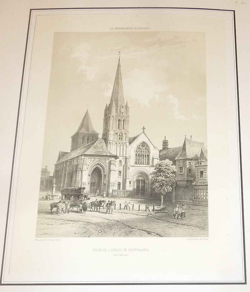 Description : Lithographie animée, tirée chez Charpentier, de « La Normandie illustrée », en deux tons au format 47/32 cm (en 1852), sous passe-partout. En bon état.