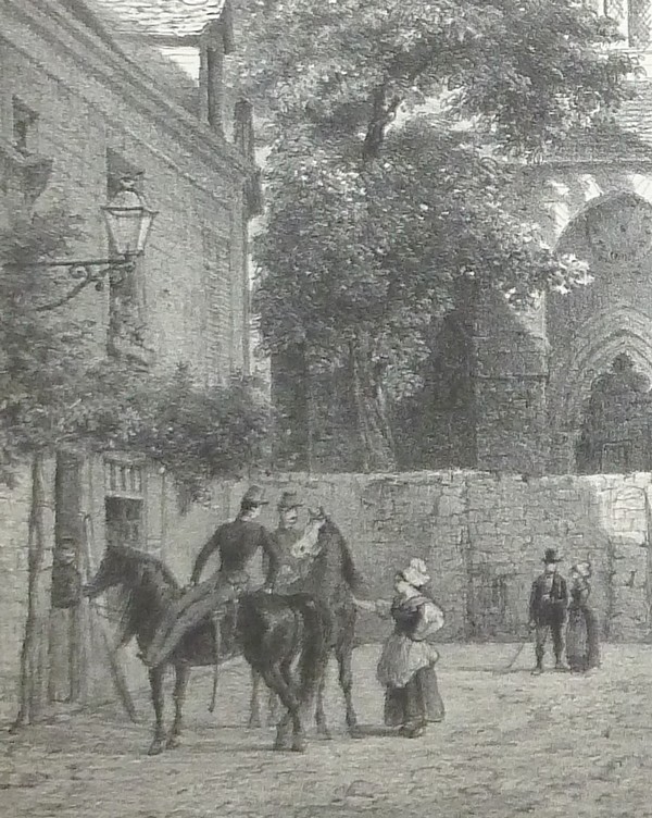 Description : Lithographie animée, tirée en deux tons chez Auguste Bry & Vt Forest pour l'ouvrage « Le Maine et l'Anjou, historiques, archéologiques et pittoresques » d'après les compositions du baron de Wismes par les meilleurs artistes, dont Ciceri, Bachelier, Nanteuil et Mouilleron. Format 47/31 cm, en bon état.