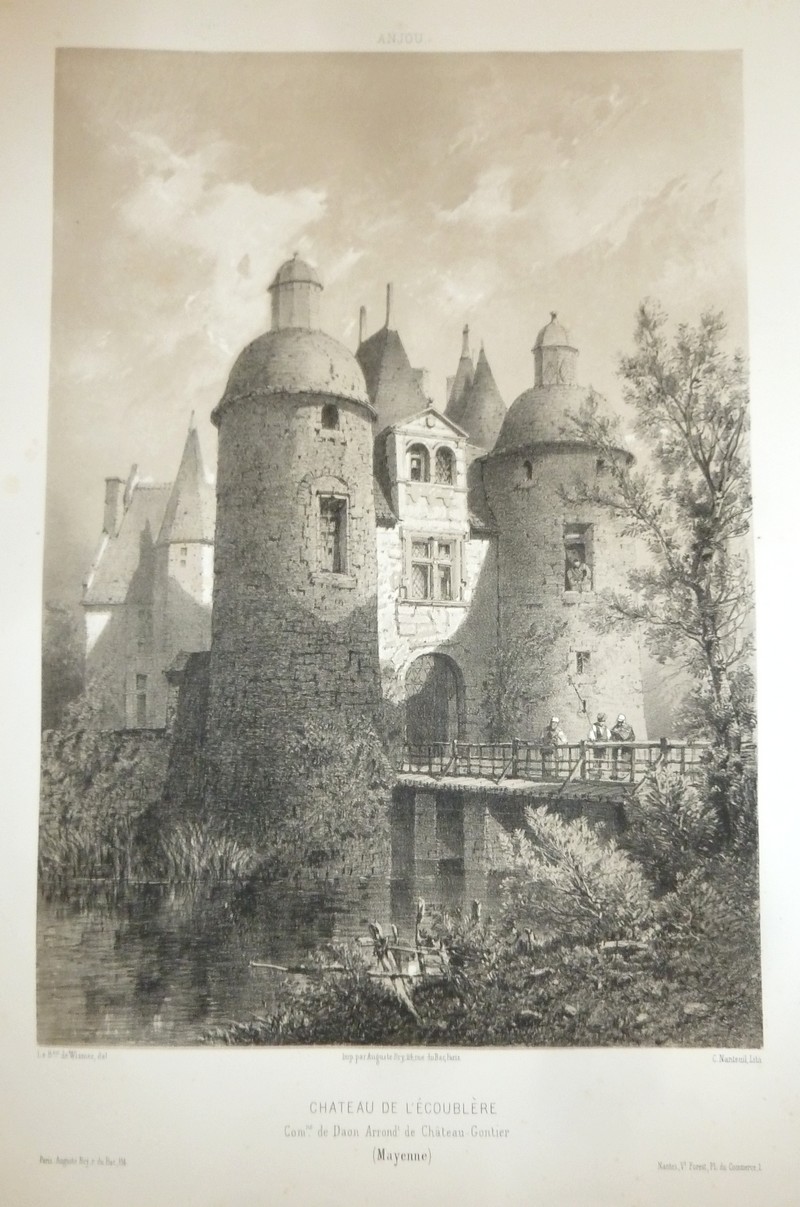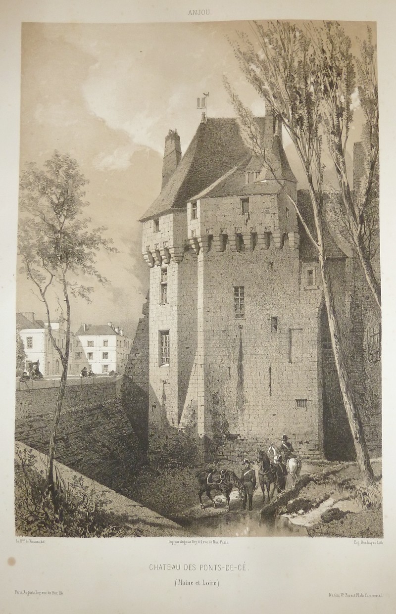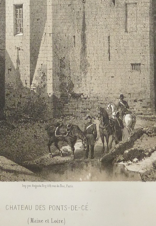 Description : Lithographie animée, tirée en deux tons chez Auguste Bry & Vt Forest pour l'ouvrage « Le Maine et l'Anjou, historiques, archéologiques et pittoresques » d'après les compositions du baron de Wismes par les meilleurs artistes, dont Ciceri, Bachelier, Nanteuil et Mouilleron. Format 47/31 cm, avec légères rousseurs en pourtour, en bon état malgré ces légers défauts.