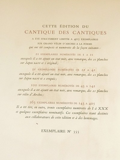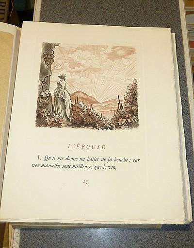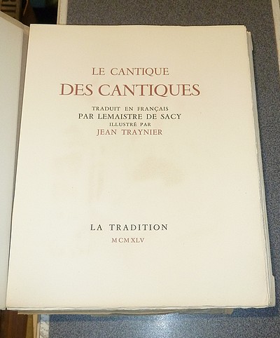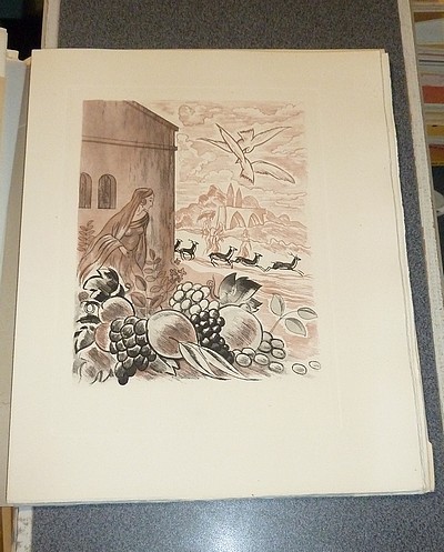 Description : Illustré à l'eau-forte par Jean Traynier. Traduits en français par Lemaistre de Sacy. La Tradition, 1945. Au format petit in 4 en feuilles sous chemise et emboitage, comprenant les eaux-fortes de Jean Traynier imprimées en taille douce, 91 pages sur papier grand vélin d'Arches à la forme, seul papier, 355/405 du tirage total. En bon état.