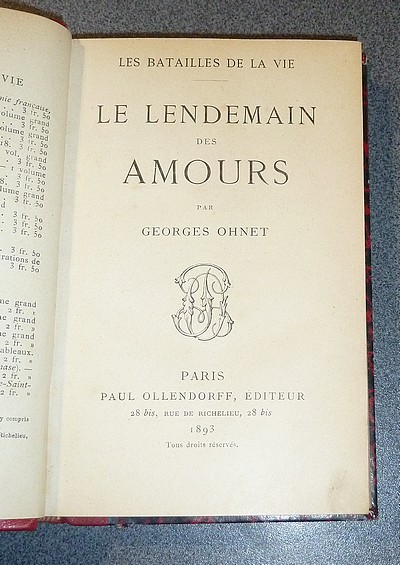 Description : Roman de la série « Les batailles de la vie ». Paul Ollendorff éditeur, 1893. Au format in 12 comprenant 352 pages, relié en demi basane rouge à dos lisse et faux nerfs, en bon état.