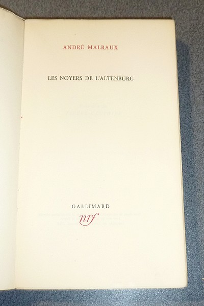 Description : NRF, Gallimard, 1948. Exemplaire sur papier Alfa justifié au format in 8 broché avec couverture repliée, en état très correct. A noter : cet ouvrage est paru en Suisse en 1943 sous le titre « La lutte avec l'ange » mais fut en partie brûlé par la Gestapo.