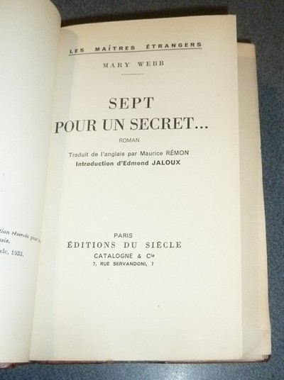 Description : Exemplaire 373/400 sur papier alfa, seul papier de l'édition originale française, au tirage total de 445. Traduit par Rémon, introduction d'Edmond Jaloux. Les éditions du Siècle, Catalogne et Cie, 1933. Au format in 12 grand de marge non coupé ni rogné de XV + 374 pages, relié en demi basane à coins, dos à nerfs, tête haute dorée, couverture et dos conservées, en très bon état.