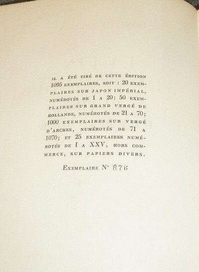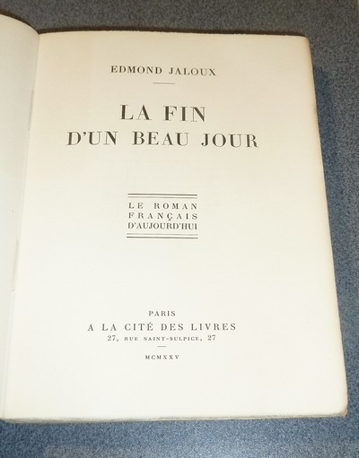 Description : Exemplaire sur papier vergé d'Arches. « À la cité des livres », 1925, collection « Le roman français d'aujourd'hui ». Au format petit in 8 broché avec couverture repliée, comprenant 248 pages, en bon état.