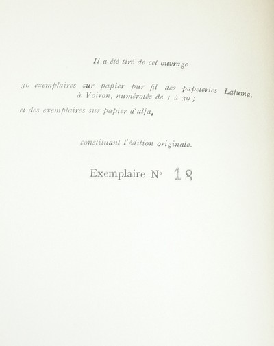 Description : 1/30 exemplaire (n° 18) sur papier pur fil Lafuma, grand de marge non rogné. Librairie Plon, 1931. Au format in 12 broché, en bon état.