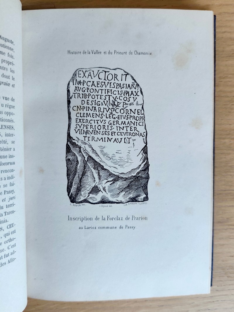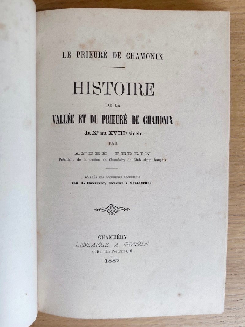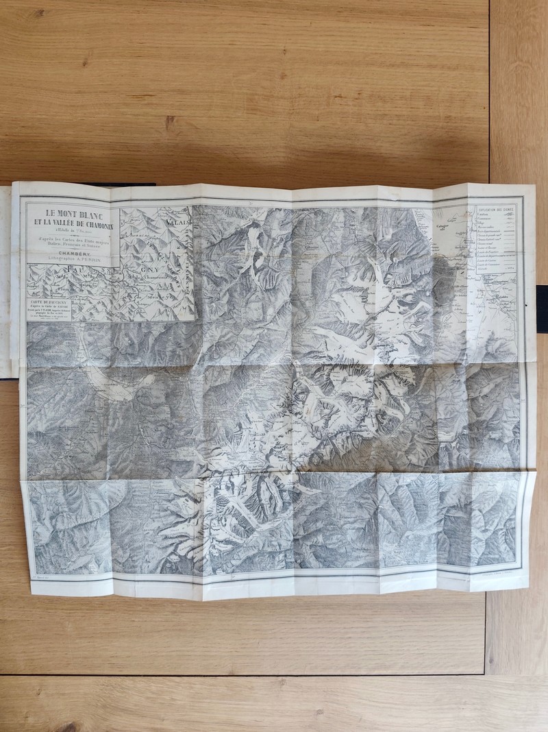 Description : Librairie Perrin, 1887, Chambéry. In 8 comprenant 253 pages + table + 2 gravures en hors texte lithographiées chez Perrin (inscriptions), un grand plan dépliant (49 par 62 cm) « Le Mont-Blanc et la vallée de Chamonix, d'après les cartes des états majors, italien, français et suisse », d'après J.C. Dijoud, lithographie A. Perrin à Chambéry. Relié en demi basane d'époque, dos lisse à faux nerfs. Édition originale de cette étude incontournable, bien complète de ses deux lithographies en hors texte et de sa carte, en très bon état.