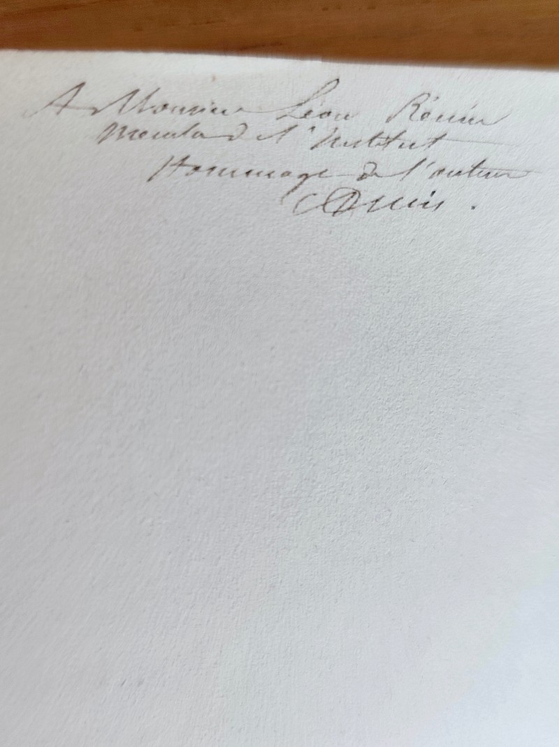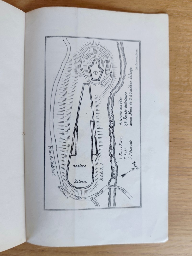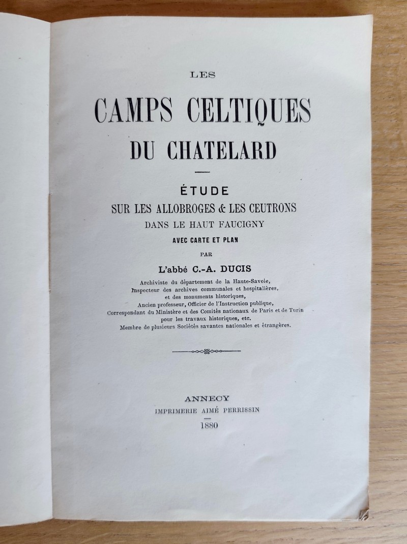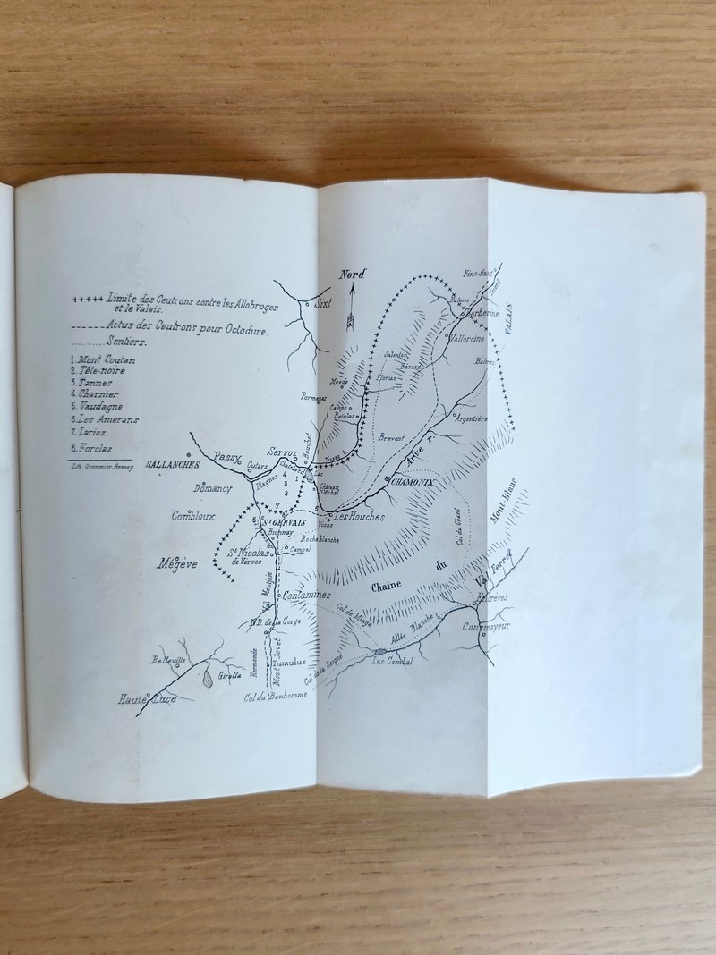Description : Dédicace autographe signée de l'auteur. Avec carte et plan. Imprimerie Aimé Perrissin, 1880. In 8 broché 41 pages + table + une carte et un plan dépliant, en bon état. Table : Description des camps - Le territoire allobroge - Le territoire ceutron - Maintien des mêmes limites dans le moyen-age - Le lac de Servoz et le déplacement de l'Arve ; Guerre ; Industries des Ceutrons - Servoz, Saint-michel et Notre-Dame-du-Lac, Vallorcine, Les Houches, Montjoie, Vasticum - Conclusion.