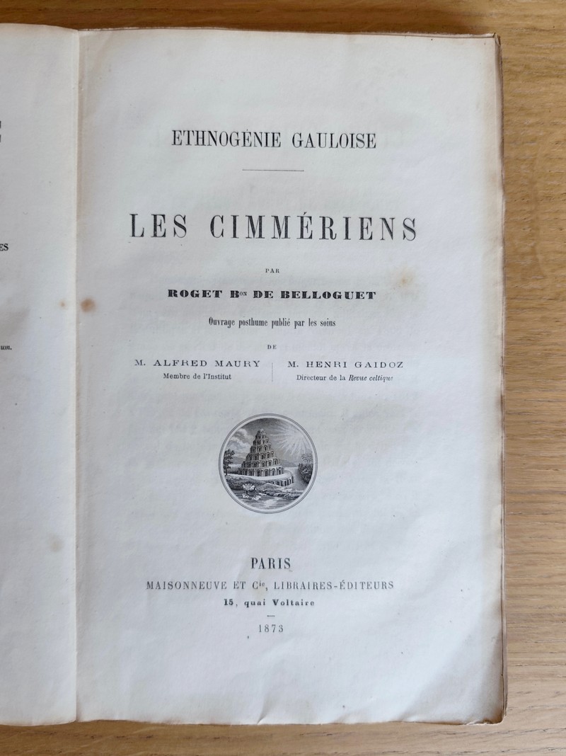Description : Maisonneuve et Cie, 1873, Paris. Au format in 8 broché abimé, dos cassé et manque de la dernière de couverture, 119 pages, envoi manuscrit sur la première de couverture « de la part de Madame de Belloguet ». Aspect correct. A noter : cette ethnogénie (étude théorique des groupes humains décrits par l'ethnographie) a été éditée en quatre parties de 1861 à 1873. Cette dernière partie est la plus rare.