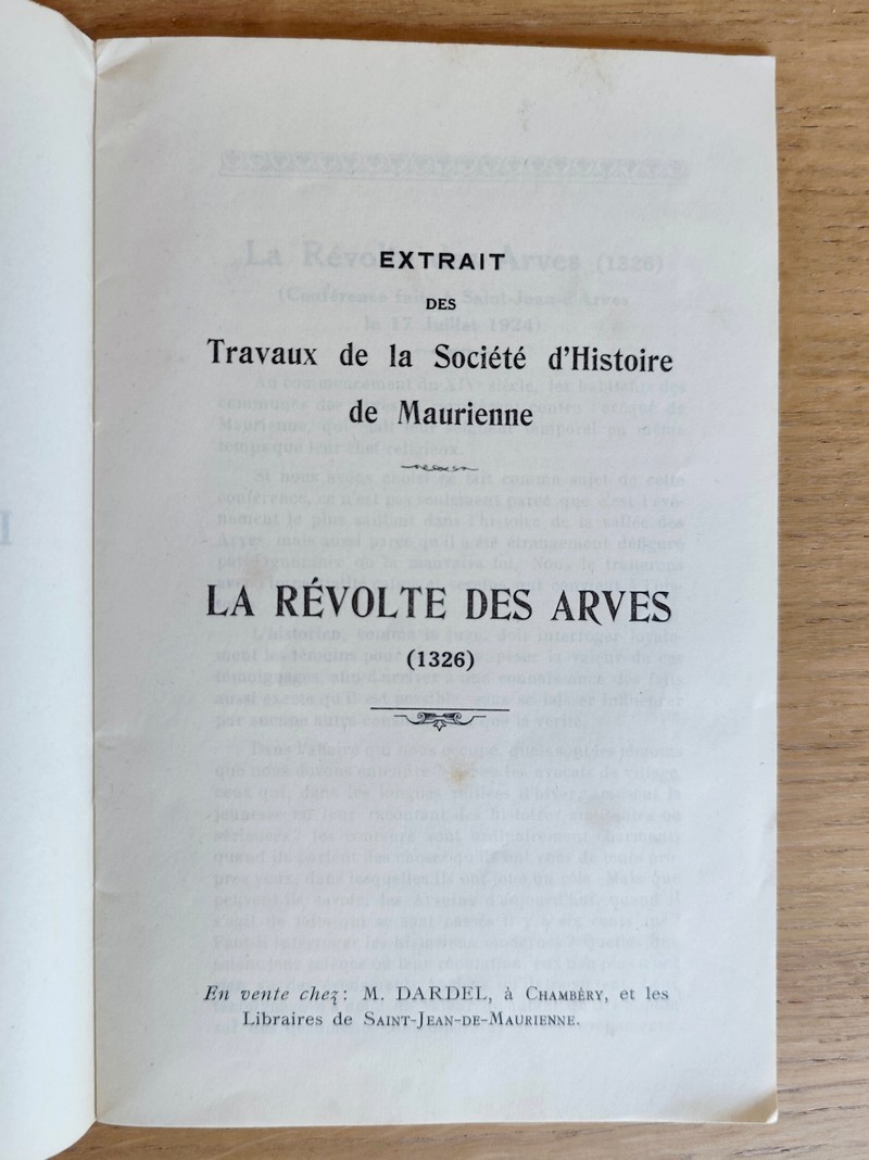 Description : Chez Dardel, 1928, Chambéry, StJean de Maurienne. Plaquette in 8 brochée de 29 pages, tiré à part et extrait des travaux de la Société d'histoire de Maurienne, en bon état.