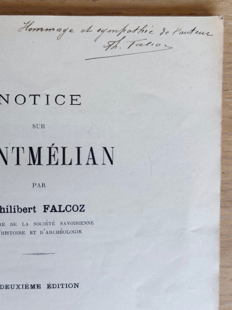 Description : Dédicace autographe signée par l'auteur en page de titre. Imprimerie Générale savoisienne, 1910, seconde édition. Plaquette brochée de format in 8 comprenant 32 pages. En bon état, malgré un dos renforcé.