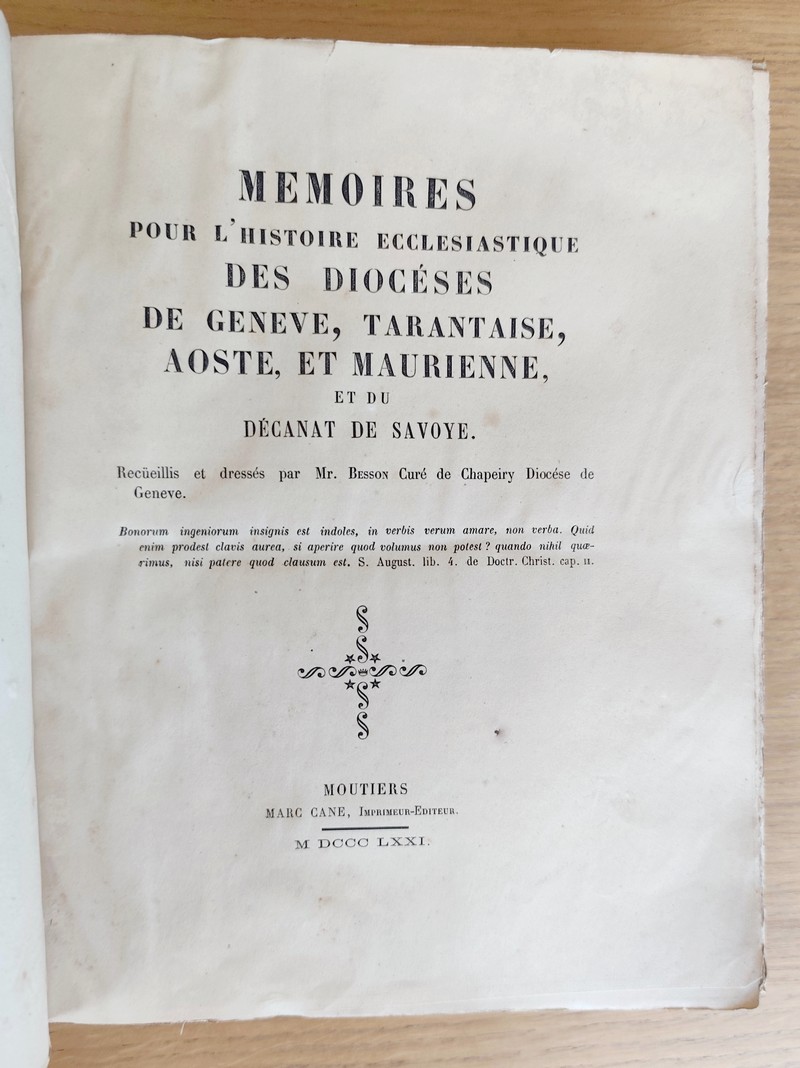 Description : Chez Marc Cane, 1871 à Moutiers, nouvelle édition et réimpression de l'édition de 1759 chez Henault. In 4 comprenant VIII + 498 pages + 6 ff liste des souscripteurs et avis. Broché avec couverture défraichie et dos cassé, intérieur frais et pages non coupées.