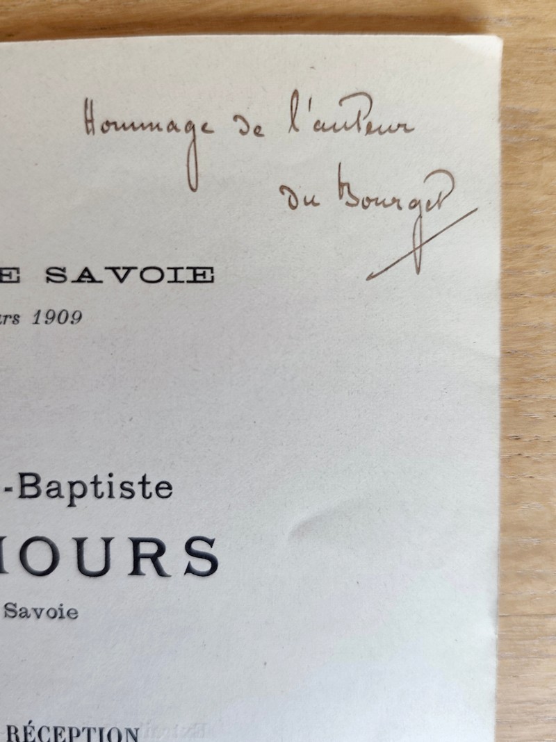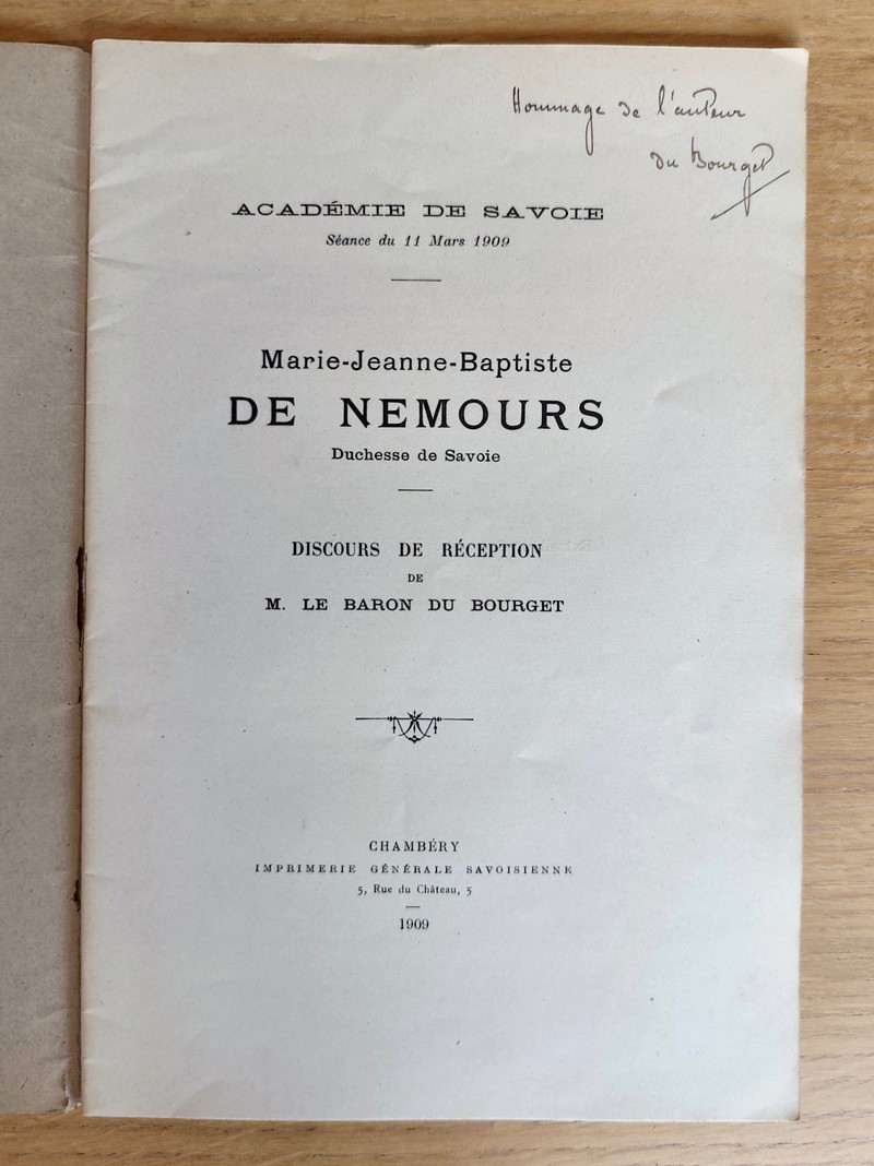Description : Dédicace autographe de l'auteur en page de titre. Imprimerie générale savoisienne, 1909, Chambéry, extrait et tiré à part de la « Savoie littéraire et scientifique ». Plaquette in 8 brochée de 35 pages, en assez bon état.