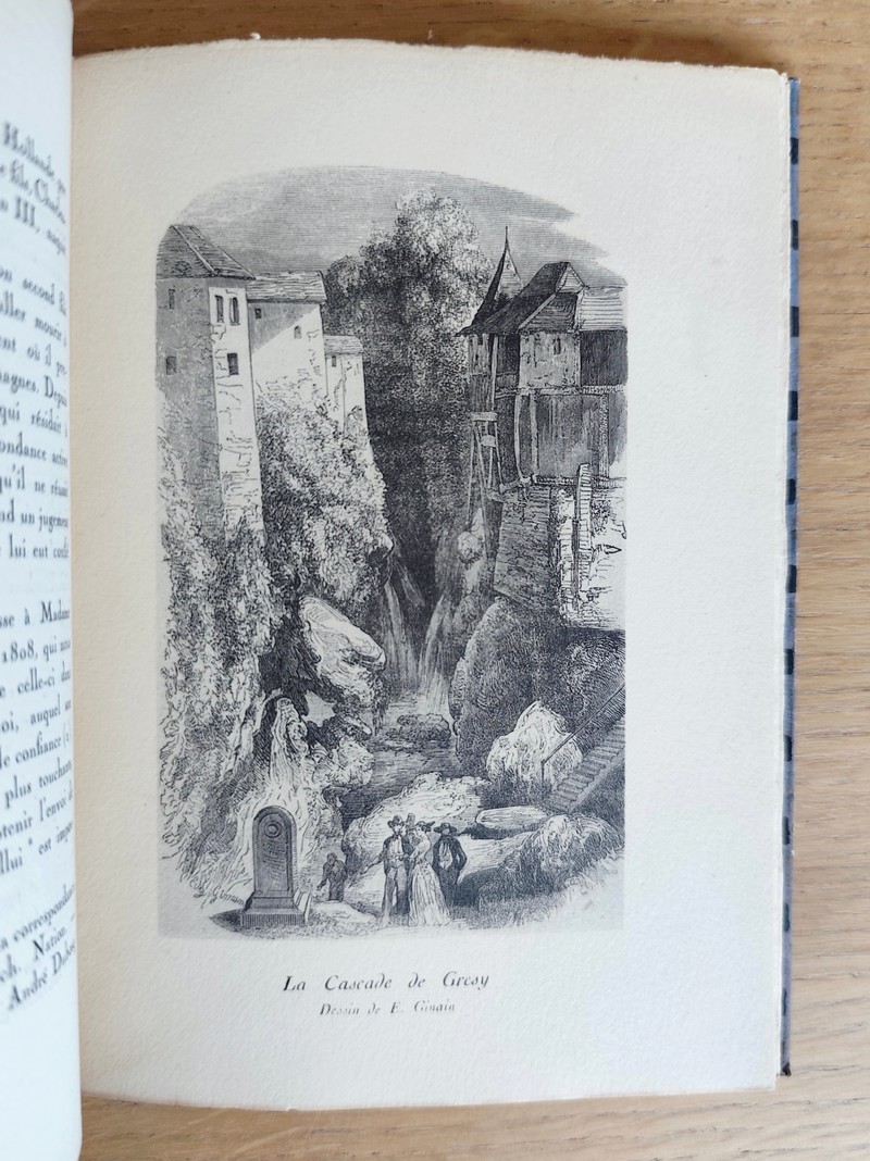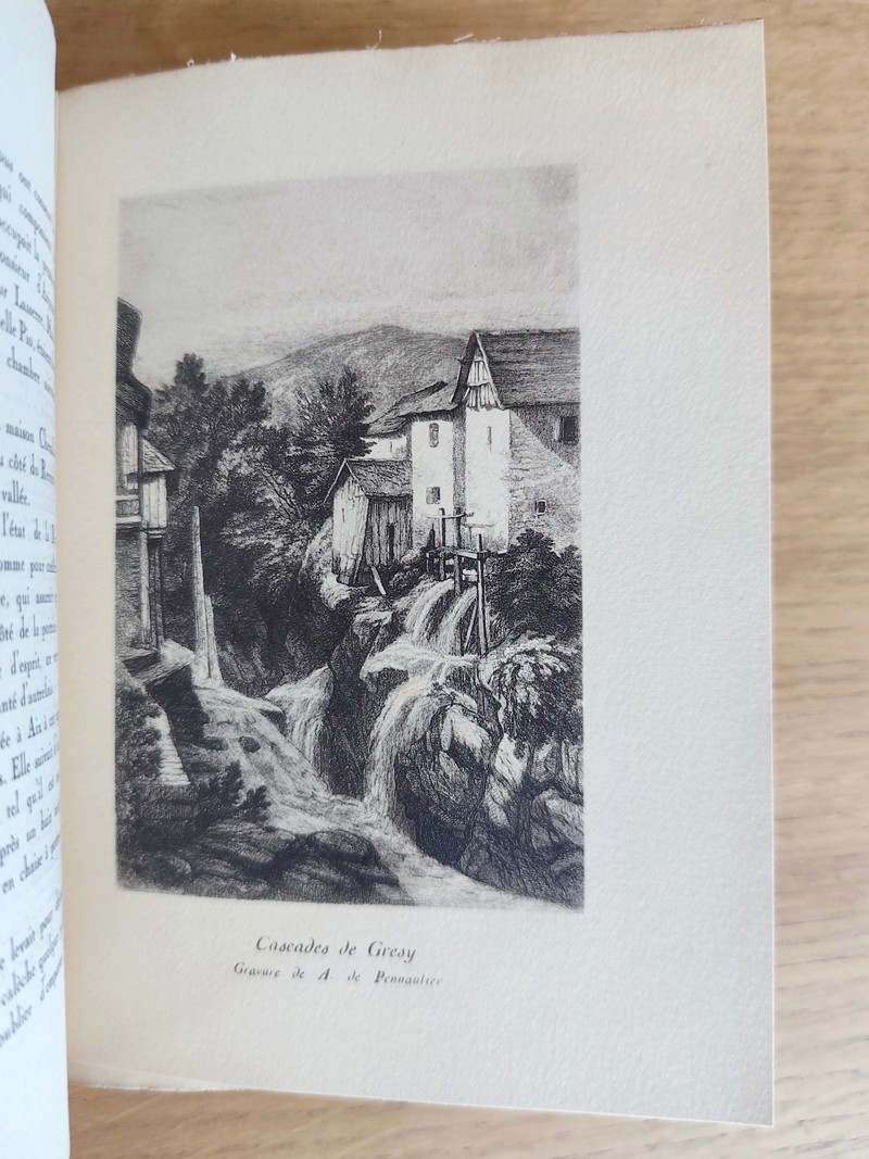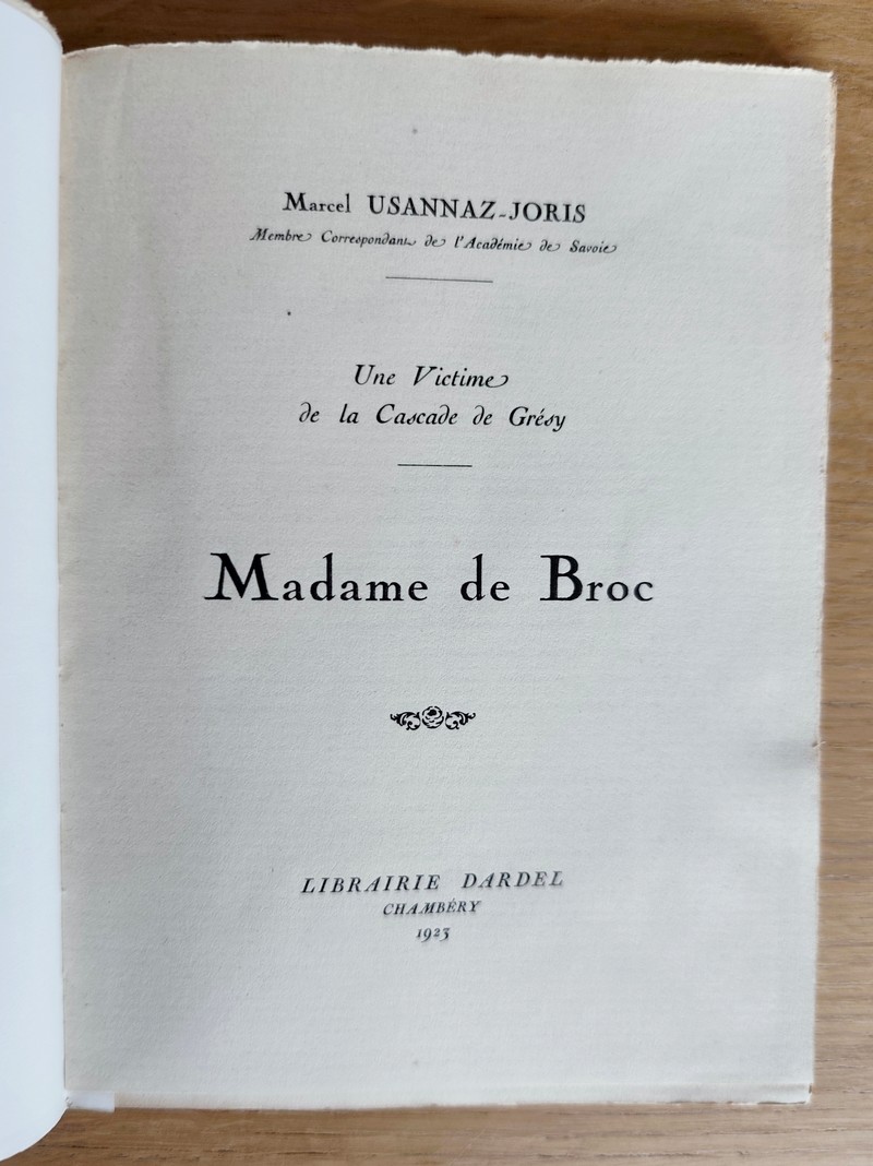 Description : Avec 4 illustrations en hors-texte. Librairie Dardel, Chambéry, 1925. Petit in 8 broché avec couverture illustrée, 57 pages, table, contient une bibliographie et une copie de l'état civile de la ville d'Aix les Bains. Bon état. A noter : Adèle de Broc se noie dans la cascade de Grésy, le 10 juin 1813, sous les yeux de son amie la reine Hortense. Cette dernière fait élever sur les lieux du drame une stèle qui invite les visiteurs à la prudence avec ce message : « Ici, Madame la baronne de Broc, âgée de 25 ans, a péri sous les yeux de son amie, le 10 juin 1813. O vous qui visitez ces lieux, n'avancez qu’avec précaution sur ces abîmes : songez à ceux qui vous aiment ! »