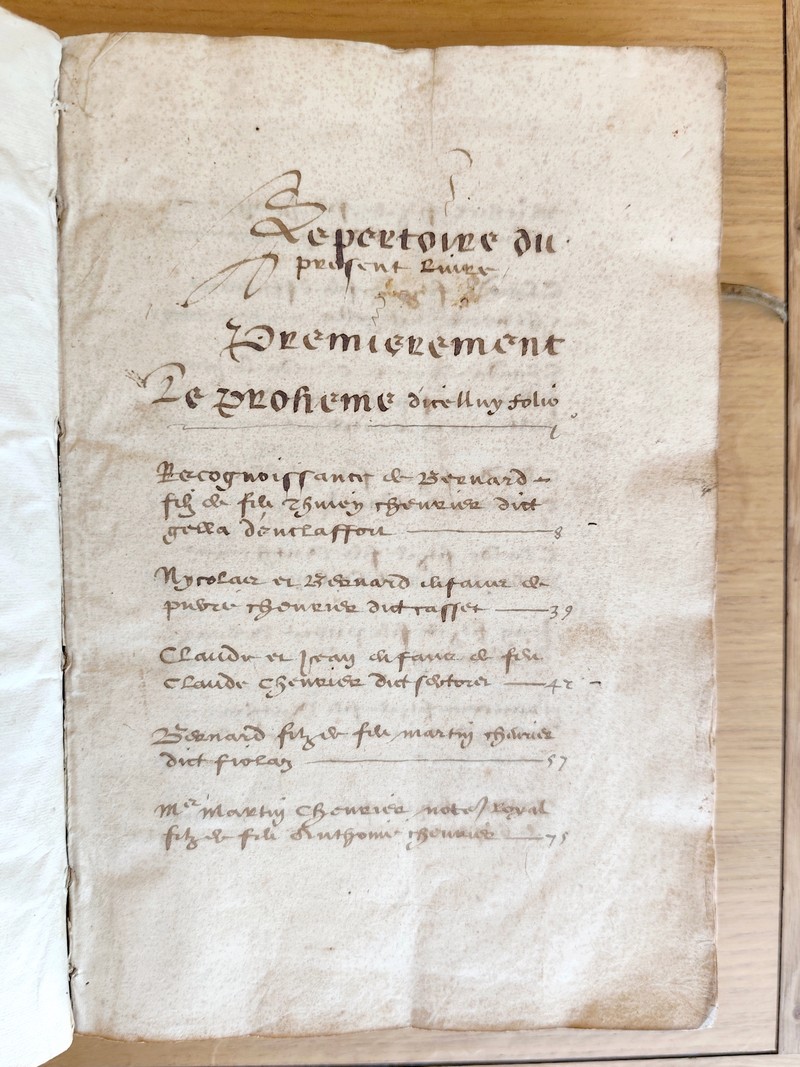 Ce Terrier concerne la Seigneurie de Fontany et d'Anclaffort représentant les communes de Champriond et d'Anclaffort ancien nom d'Anglefort, sous le régime des comtes de Savoie. L'écriture est en ancien françois et doit être clairement lisible pour les personnes spécialisées. Il comprend une série de reconnaissances. Manuscrit et document historique d'une grande importance, il montre l'importance de la Seigneurie de Fontany et, dans une certaine mesure, les aspects de la vie économique et sociale au tout début du XVIIe siècle dans le Duché de Savoie.