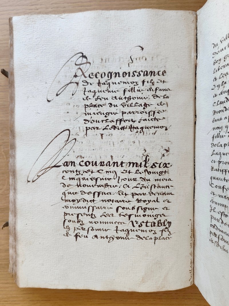 Description : Important Terrier relié dans un plein vélin souple à lacets au format petit folio en assez bon état, avec titre au dos et inscription au premier plat manuscrite à l'encre du temps, avec pagination comprenant 6 ff (Répertoire), 349 pages double, soit 696 pages simples.