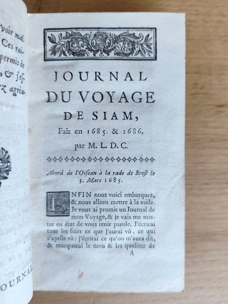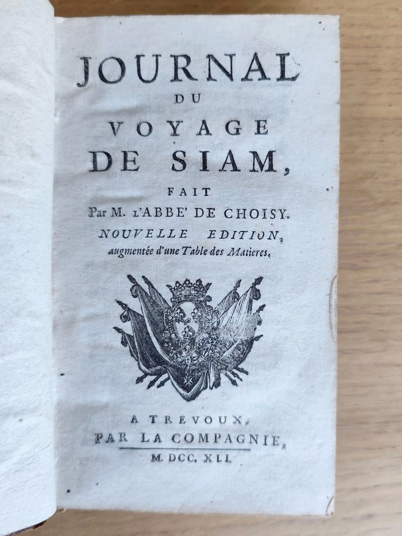 Description : Par la Compagnie, 1741, à Trévoux, nouvelle édition augmentée d'une table des matières. Au format in 12 comprenant 2 ff, 512 pages, dans une reliure d'époque coiffes abimée, coins émoussés, tranches marbrées, dos à nerfs richement ornementé. A noter : François-Timoléon de Choisy (1644-1724) est un religieux, homme de lettres, mémorialiste et académicien français. De mars 1685 à juin 1686, il accompagne, comme coadjuteur, le chevalier Alexandre de Chaumont dans une mission au Siam auprès du roi Narai. L'auteur tient quotidiennement son journal depuis son départ de Brest jusqu'à son retour. Louis XIV fait dépêcher une ambassade extraordinaire attiré par les richesses du royaume de Siam. C'est le récit de ce voyage.