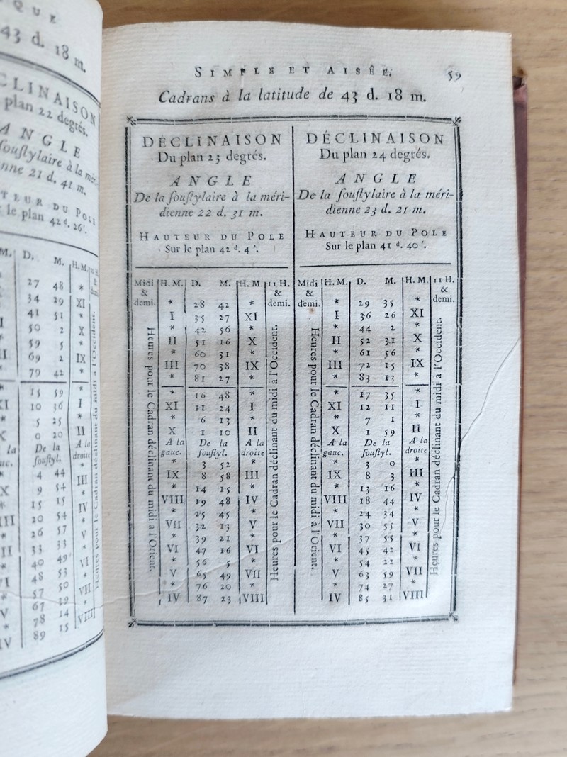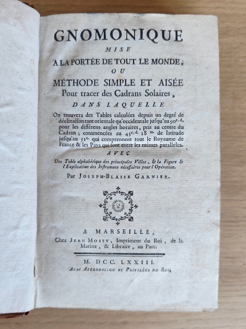 Description : Chez Jean Mossy, imprimeur du Roi, 1773, à Marseille. Au format in 8 comprenant une table alphabétique des principales villes et la figure et l'explication des instruments nécessaires pour l'opération. X, 2 ff (approbation, privilège), 460 pages, 5 planches dépliantes comprenant 9 figures, le tout relié en plein veau fauve d'époque, dos à nerfs avec caissons richement ornementés (petit accident), tranches marbrées, en bel état.