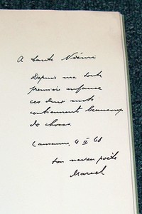 Description : Ouvrage avec une dédicace autographe signée de l'auteur datée de 1968. Édition à compte d'auteur imprimée en Suisse, sans date, avec 24 gravures dessinées et burinées sur plomb d'imprimerie par l'Auteur. In-8° format oblong vertical, tirage à 100 exemplaires sur papier super blanc Offset, en bon état.